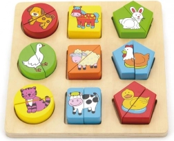 VIGA oferuje drewniane edukacyjne puzzle z dziewięcioma kolorowymi elementami, z których dzieci mogą tworzyć obrazy różnych zwierząt, takich jak krówki, kaczuszki i króliczki. Gra pozwala rozwijać umiejętności motoryczne oraz poznawanie kolorów i kształtów. Dzięki bezpiecznym i nietoksycznym farbom, te puzzle są idealne dla małych dzieci.