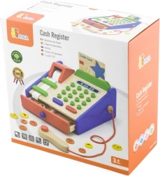 Kasa wykonana jest głównie z drewna i uzupełniona wytrzymałymi elementami z tworzywa. Idealna do zabawy w sklep w domu i w przedszkolu, gdzie naturalnie rozwija logiczne myślenie, kompetencje poznawcze oraz relację z liczbami w duchu Montessori.