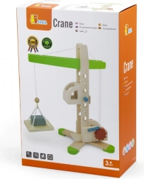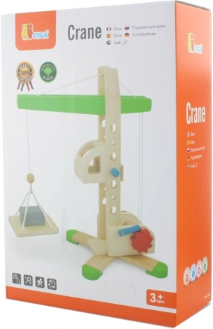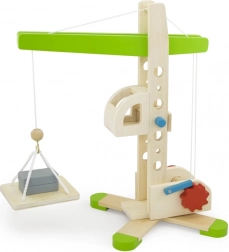 Ten drewniany dźwig z wyciągarką zapewnia dzieciom realistyczne doświadczenia z budowy. Obrotowe ramię, ręczne nawijanie i system bloczków pozwalają bezpiecznie podnosić i przenosić drobne przedmioty. Naturalne drewno, gładkie krawędzie i zielone detale podkreślają ponadczasowy design i trwałość zabawki.
