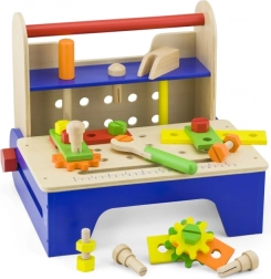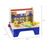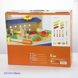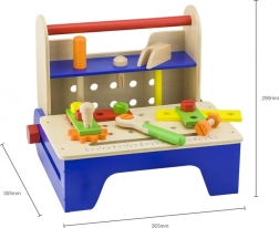 Odkryj kreatywny świat budowania z tym wysokiej jakości drewnianym zestawem narzędzi dla dzieci od 3 lat. W praktycznej skrzynce, która łatwo zmienia się w stół warsztatowy, znajdziesz wszystko, czego potrzeba małym majsterkowiczom – śrubokręt, młotek, klucz, śruby, nakrętki i listewki. Zabawa rozwija małą motorykę, logiczne myślenie i kreatywność, zapewniając godziny rozrywki bez ekranów.