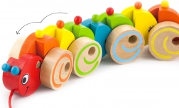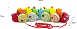 Ta wesoła drewniana gąsienica to idealna zabawka dla maluchów. Wielobarwne segmenty podczas jazdy poruszają się i obracają, co zachęca dzieci do chodzenia i aktywnej zabawy. Solidna konstrukcja i gładkie krawędzie zapewniają bezpieczne użytkowanie w dziecięcych rączkach.