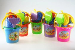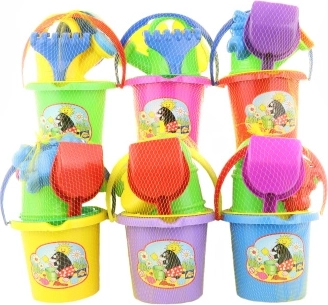Zestaw do zabawy w piasku dla dzieci od 3 lat zawiera wszystko, co potrzebne do zabawy na plaży i w piaskownicy: wiaderko, sitko, łopatkę, grabki, konewkę i foremkę. Dzięki praktycznemu zestawieniu i lekkiej plastikowej konstrukcji jest idealny dla małych budowniczych. Kompletny zestaw do piasku, lekkie i bezpieczne wykonanie oraz uroczy obrazek na wiaderku ucieszą każdego małego twórcę.
