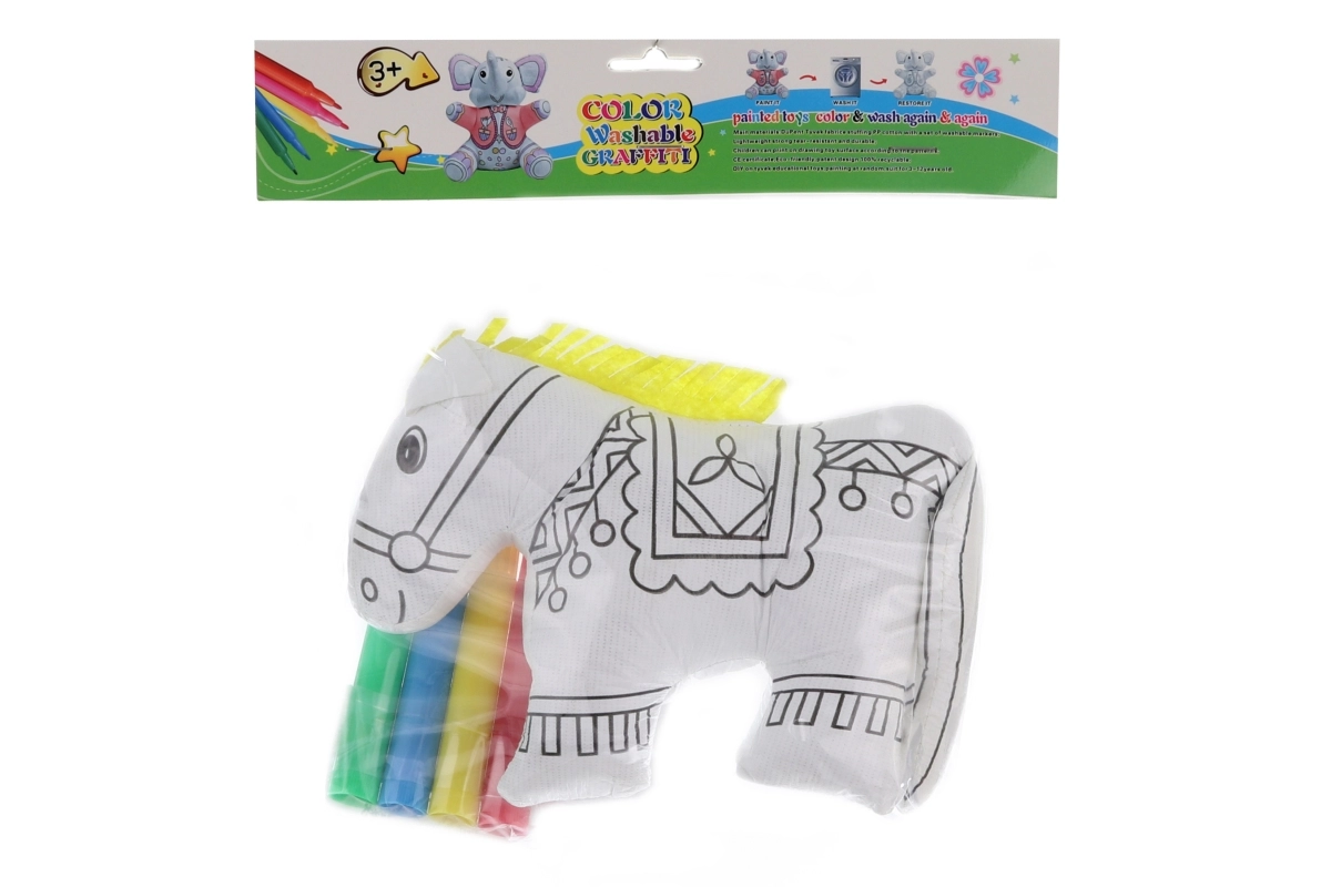 Zmywalne zwierzątko w kształcie konia to świetny wybór dla małych artystów. Dzięki specjalnemu materiałowi z poliestru konika można łatwo wyprać i ponownie pokolorować, więc kreatywna zabawa nigdy się nie kończy. Zestaw zawiera wszystko, czego dzieci potrzebują do natychmiastowego tworzenia.