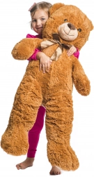 Miś ma całkowitą długość około 90 cm (ok. 90 × 40 × 20 cm), a w pozycji siedzącej mierzy około 55 cm. Dzięki wysokiej jakości wykonania zachowuje kształt i stanie się ulubionym towarzyszem do codziennej zabawy i relaksu.