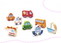 Wspiera rozwój drobnej motoryki, myślenia logicznego i rozpoznawania kolorów. Dzięki uwzględnieniu zwierząt takich jak słoń, żyrafa, zebra, lew i krokodyl zabawa jest rozszerzona także o elementy zoo. Różnorodność środków transportu takich jak policja, straż pożarna, karetka, taksówka, autobus, samochód osobowy, rower i łódź zapewnia, że dziecko nigdy się nie znudzi.