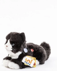 Ten pluszowy kot ze dźwiękiem ucieszy każdego małego i dużego miłośnika zwierząt. Po naciśnięciu wydaje przyjazne odgłosy, które pobudzają dziecięcą wyobraźnię i wspierają rozwój sensoryczny. Dzięki miękkiemu i gęstemu pluszowi jest idealny do przytulania i stanie się ulubionym towarzyszem na dzień i do zasypiania.
