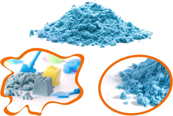 Piasek delikatnie się przesypuje, ale po ściśnięciu trzyma kształt. Nie wysycha i zachowuje swoje właściwości nawet po wielu godzinach zabawy.
