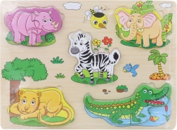 Odkryj zabawną drewnianą układankę z motywem safari, która rozwija małą motorykę, rozpoznawanie kształtów i zwierząt oraz wspiera logiczne myślenie u dzieci od 3 lat. Wysokiej jakości drewniane wykonanie i kolorowe ilustracje zachęcają do zabawy raz po raz.