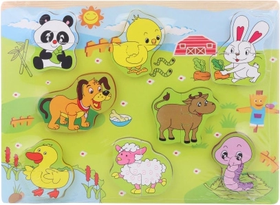 Ta wysokiej jakości drewniana układanka daje dzieciom radość z odkrywania i nauki. Kolorowe elementy z motywami zwierząt domowych pomagają rozwijać koordynację oko–ręka i cierpliwość, a jednocześnie uczą rozpoznawania kształtów i zwierząt.