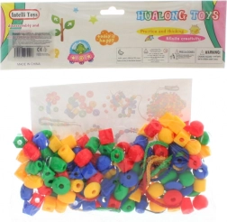Zestaw sprawdzi się w domu i w przedszkolu. Dzięki kolorowym sznurkom nawlekanie jest łatwe i przyjemne. Koraliki mają około 1 cm, więc są wygodne do chwytania przez małe dziecięce rączki.