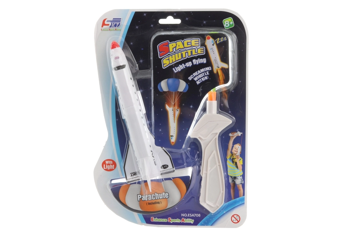 Wyrzutnia promu kosmicznego ze światłem. Rakieta podczas lotu gwiżdże i świeci. Zasilanie: 2x bateria guzikowa (AG3) – w zestawie. Wymiary rakiety ok. 20,5 cm. Wymiary opakowania ok. 29,5 × 21 × 5 cm. Wiek: 8+