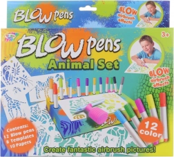 Odkryj radosne tworzenie z kreatywnym zestawem dmuchanych flamastrów w motywie safari. Duży zestaw zawiera 12 kolorowych flamastrów, 8 szablonów, 6 arkuszy papieru, praktyczną kartonową podstawkę z uchwytem oraz nakładkę do dmuchania z pompką dla łatwego i czystego tworzenia. Idealny dla dzieci od 3 lat.