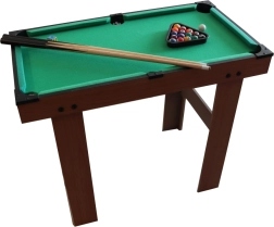 Kompaktowy dziecięcy bilard w wysokiej jakości drewnianym wykonaniu zapewnia świetną zabawę dla małych i dużych graczy. W zestawie znajdują się 2 kije, 16 bil oraz kompletne akcesoria. Dzięki wymiarom idealny do pokoju dziecięcego i do pierwszego zapoznania się z zasadami gry.