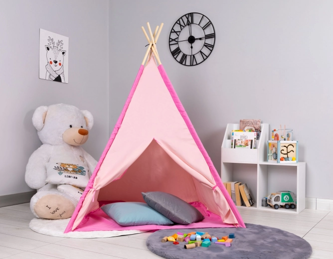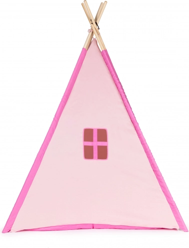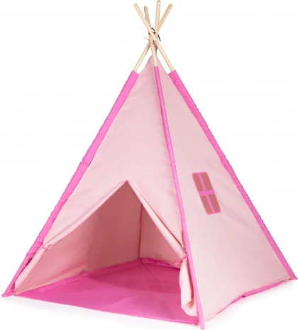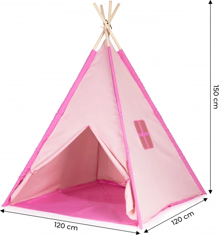Namiot tipi o wymiarach ok. 120 × 120 × 150 cm. Namiot można używać w domu w pokoju dziecięcym, a także latem na zewnątrz w ogrodzie. Dzieci będą miały mnóstwo zabawy podczas zabawy i chowania się. Wymiary opakowania ok. 10 × 10 × 90 cm. Wiek 3+. Kolor: różowy/niebieski
