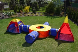 Samorozkładające się tunele i centrum przyspieszają przygotowanie. Namioty z plastikowym stelażem trzymają kształt i są stabilne nawet przy intensywnej zabawie.