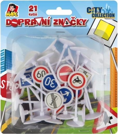 Zabawny zestaw znaków drogowych dla małych kierowców od 3 lat. Opakowanie zawiera 21 plastikowych znaków z kolekcji City Collection, które nie wymagają baterii i świetnie sprawdzają się w rozwijaniu wyobraźni i umiejętności. Kompaktowe wymiary 18 × 16 × 3 cm ułatwiają przenoszenie i przechowywanie.
