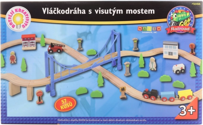 Maxim Kolejka z dużym mostem wiszącym zapewnia wspaniałe wrażenia z jazdy przez malowniczą dolinę. Ten zestaw z 57 elementami gwarantuje godziny kreatywnej zabawy dla dzieci w wieku od 3 lat.