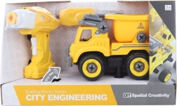 Ta wywrotka z serii inżynierii miejskiej rozwija umiejętności dzieci poprzez zabawę: najpierw samodzielnie składają pojazd za pomocą dołączonego śrubokręta lub wiertarki, następnie silnik z wiertarki wkładają do auta i ruszają na budowę. Proste sterowanie przód/tył, efekty dźwiękowe i solidna konstrukcja pobudzają wyobraźnię oraz koordynację ręka–oko.
