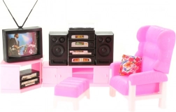 - Kompletny zestaw do salonu dla lalek: meble i elektronika