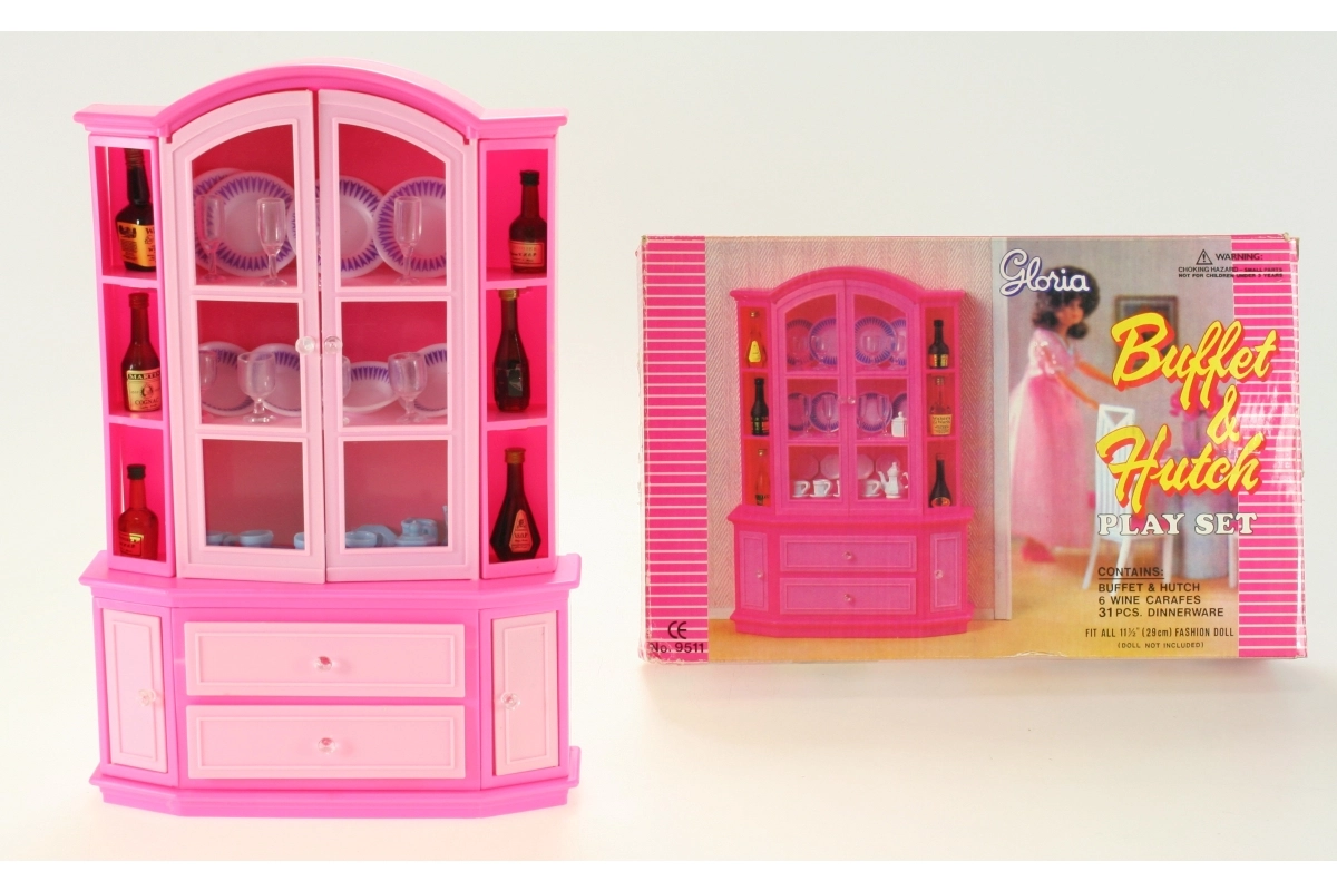 Stylowa szafka dla lalek marki Glorie oferuje praktyczne przechowywanie akcesoriów i atrakcyjny wygląd. Zawiera 2 szuflady, 2 szafki z otwieranymi drzwiczkami oraz przeszkloną część z bogatym wyposażeniem: 8 talerzy, 8 szklanek, 6 butelek i zestaw do herbaty. Idealny dodatek do domku dla lalek, który wspiera kreatywną zabawę dzieci od 3 lat.
