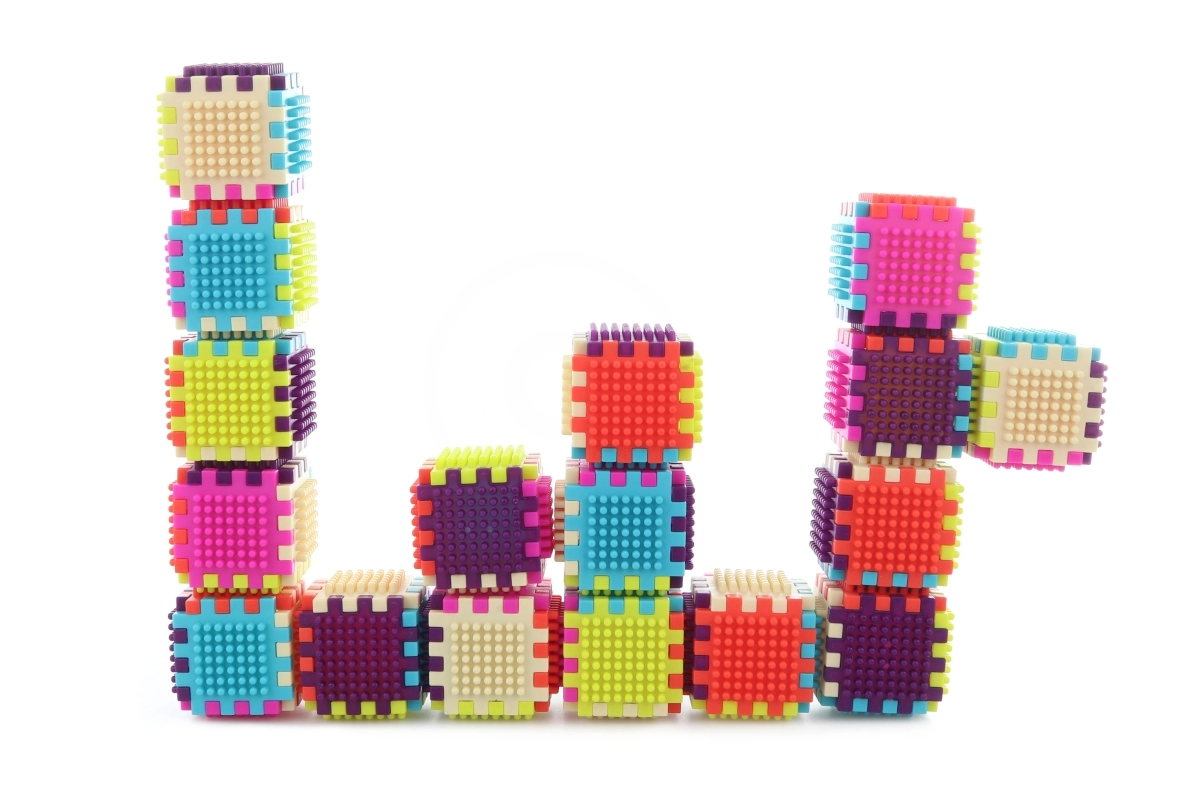 Żywe kolory i łatwo łączące się klocki inspirują dzieci do tworzenia wież, domków i fantazyjnych konstrukcji.