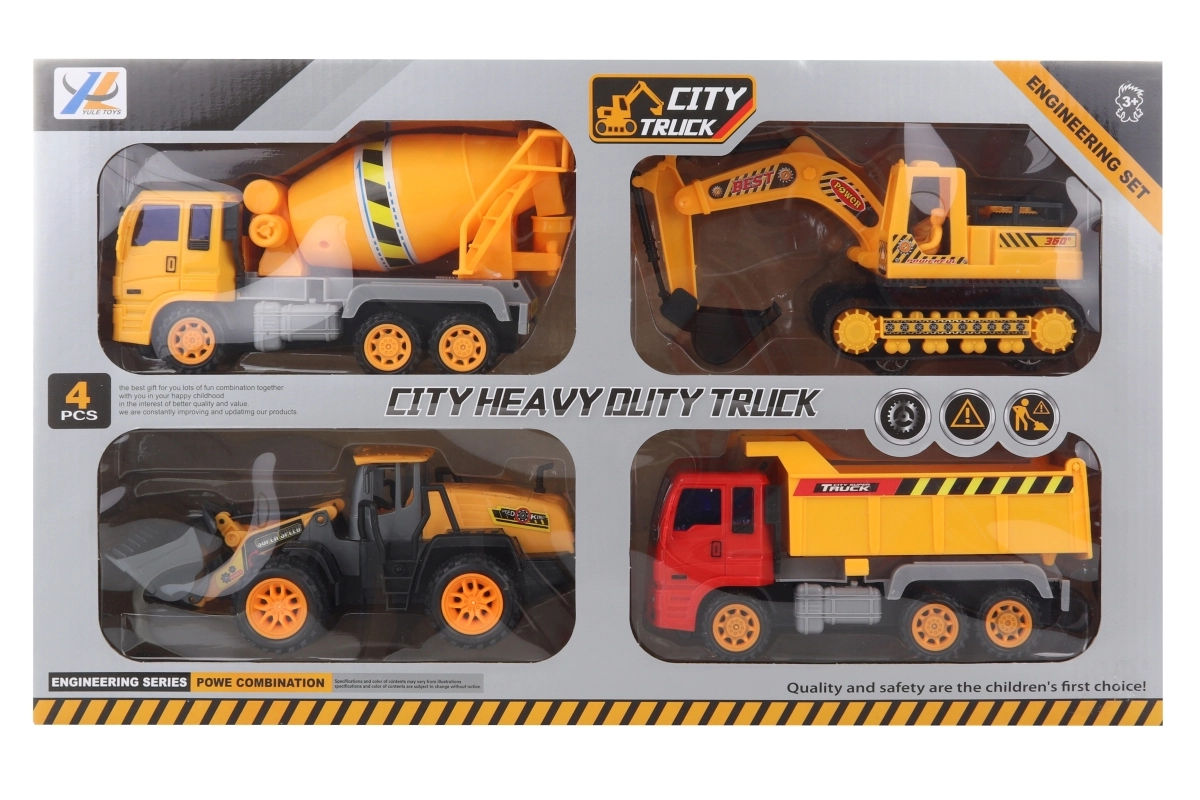 Odkryj zabawną zabawkę dla małych budowniczych: zestaw 4 pojazdów obejmuje wywrotkę, koparkę, ładowarkę i betoniarkę. Każde auto ma około 19 × 10 cm (w zależności od typu) i jest idealne dla dzieci od 3 lat.