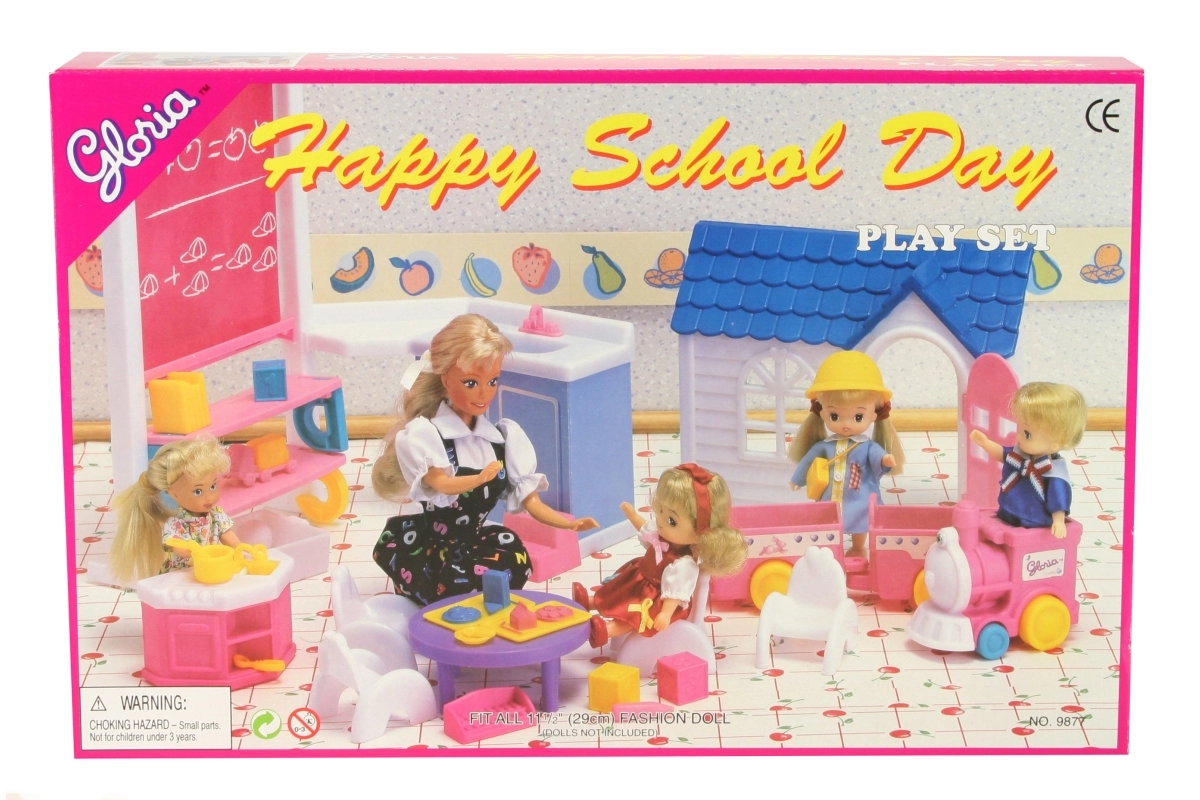 Rozszerz świat zabawy o kompletny zestaw Glorie przedszkole, który oferuje dużą tablicę z półkami, umywalkę, domek z otwieranymi drzwiczkami, dziecięce krzesełka i stoliczek, kuchenkę, pociąg z trzema wagonami oraz mnóstwo akcesoriów i naczyń. Idealny do rozwoju wyobraźni, umiejętności społecznych i małej motoryki. Lalki nie są częścią zestawu.