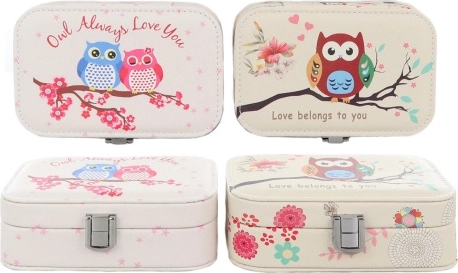 Ta delikatna szkatułka z motywem sówki ucieszy każde dziecko, które chce bezpiecznie i przejrzyście przechowywać swoje bransoletki, kolczyki czy pierścionki. Wewnątrz znajduje się praktyczne lusterko oraz trzy wydzielone przegródki, dzięki czemu wszystko pozostanie na swoim miejscu.
