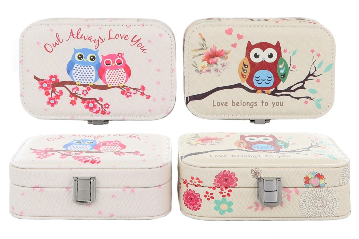 Urocza szkatułka na biżuterię z motywem sówki jest idealna dla małych elegantek. Wewnątrz znajdziesz lusterko oraz trzy praktyczne przegródki do przejrzystego przechowywania drobnej biżuterii i skarbów. Kompaktowe wymiary ok. 15 × 10 × 5 cm sprawiają, że to świetny dodatek zarówno na półkę, jak i w podróż. Odpowiednia od 3 lat.