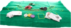 Zestaw zawiera żetony w różnych kolorach i wartościach, karty do gry i przycisk dealera dla autentycznych wrażeń z gry.