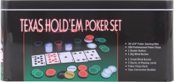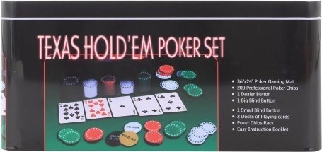Praktyczne metalowe pudełko umożliwia łatwe przechowywanie i przenoszenie zestawu, dzięki czemu możesz grać w pokera zawsze i wszędzie.