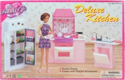 Zestaw wykonany jest z trwałego plastiku i zawiera różnorodne akcesoria kuchenne, dzięki którym można od razu zacząć „gotować”. Idealny rozmiar dla większości standardowych lalek. Lalka nie jest dołączona.