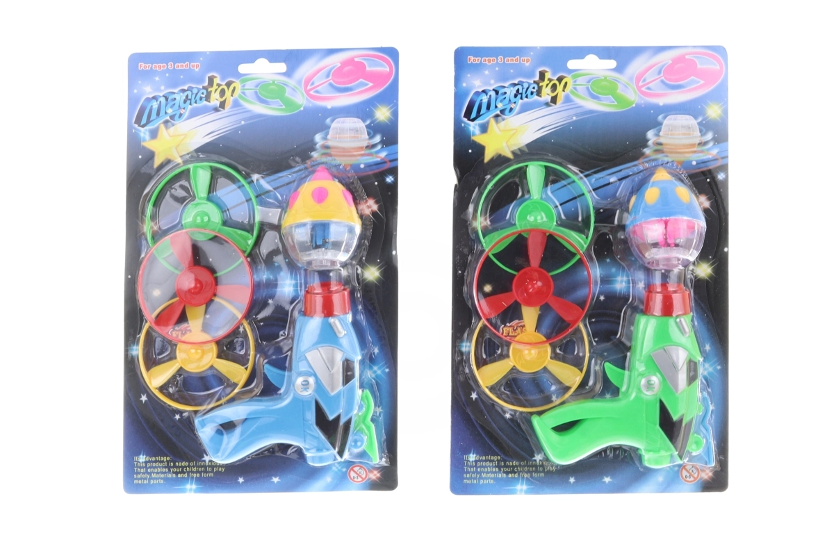 Pistolet wyrzutniowy z wirującymi śmigiełkami i świecącym bączkiem