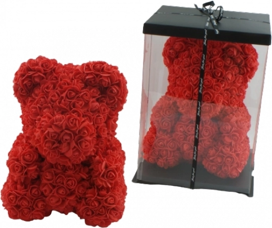 Miś z róż to elegancka dekoracja i zarazem oryginalny sposób na wyrażenie miłości. Ręcznie układane piankowe różyczki tworzą bogaty i ponadczasowy wygląd, który pasuje do sypialni, salonu i na świąteczny stół. W przeciwieństwie do żywych kwiatów długo się utrzymuje i nie wymaga żadnej pielęgnacji.