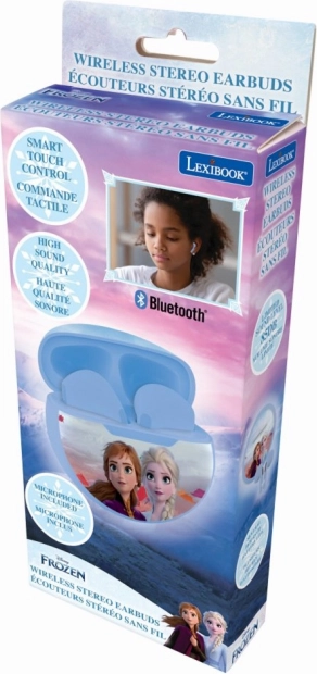 Dziecięce bezprzewodowe słuchawki douszne z motywem FROZEN łączą bezpieczeństwo, wygodę i styl. Dzięki ograniczeniu głośności do 85 dB chronią wrażliwy słuch dzieci, obsługują bezprzewodowe połączenie Bluetooth 5.1 i oferują sterowanie dotykowe, wbudowany mikrofon oraz kompaktowe etui ładujące ułatwiające podróżowanie.