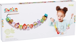 Zawiera 13 drewnianych części z bajkowymi motywami do zabawnego nawlekania.