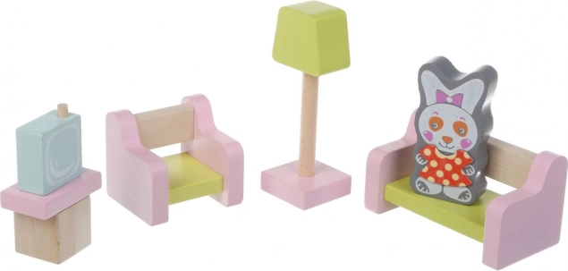 Drewniany zestaw mebli dla lalek marki Cubika to idealne uzupełnienie pokoju dziecięcego. Pobudzaj dziecięcą kreatywność i wyobraźnię dzięki temu 9‑elementowemu zestawowi, który obejmuje: