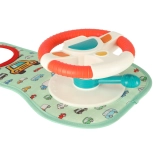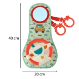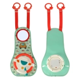 Ta interaktywna kierownica do auta, zaprojektowana tak, by zapewnić rozrywkę Twojemu dziecku podczas podróży, zawiera kolorowy panel z kierownicą i bezpiecznym lusterkiem. Zawiera cztery przyciski i sensoryczną dźwignię, które oferują dźwięki i kolorowe światła, pobudzając dziecięcą wyobraźnię i sensoryczne doznania.