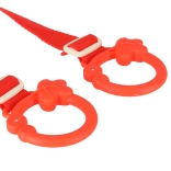 Zabawka łatwo mocuje się do tyłu siedzenia za pomocą plastikowych pierścieni, które zapewniają stabilność i bezpieczeństwo.