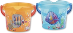 Lekkie i wytrzymałe przezroczyste wiaderko Androni z motywem rybek jest idealne do piasku i wody dla najmłodszych dzieci. Wyprodukowane we Włoszech z wysokiej jakości tworzyw sztucznych, łatwe do przenoszenia i doskonale leży w dziecięcej dłoni. Dzięki kompaktowym wymiarom nadaje się do wózka i na podróże. Bezpieczne od 12 miesięcy, niewielka waga i odporny materiał do codziennej zabawy.