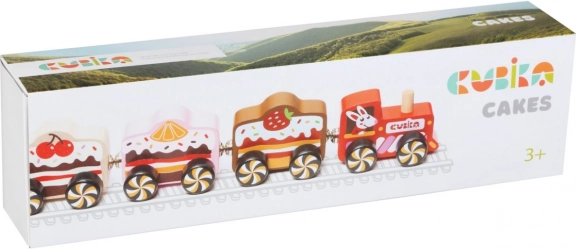 Podaruj dzieciom zabawę w pociągi w pysznie słodkim wydaniu. Drewniany pociąg CUBIKA „Cakes” łączy atrakcyjny wygląd słodkości z funkcjonalnym magnetycznym łączeniem wagoników. Staranna obróbka z europejskiego drewna i gładkie wykończenie zapewniają długą żywotność oraz bezpieczną zabawę.