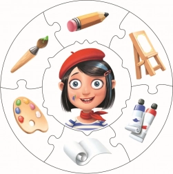 Naukowe puzzle Puzzlika Zawody 1 przynoszą dzieciom mądrą zabawę, która wspiera rozwój ważnych umiejętności. Z 21 solidnych elementów ułożysz trzy oddzielne, okrągłe sceny z zawodami – lekarz, rzemieślnik i malarka. Dzięki wysokiej jakości, wielowarstwowemu kartonowi z błyszczącą powierzchnią elementy są przyjemne w dotyku, łatwe w pielęgnacji i trwałe.