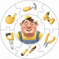 Dzieci w zabawny sposób poznają narzędzia, takie jak młotek, piłka czy wiertarka. Podczas układania trenują małą motorykę oraz rozumienie związków między zawodem a narzędziami.