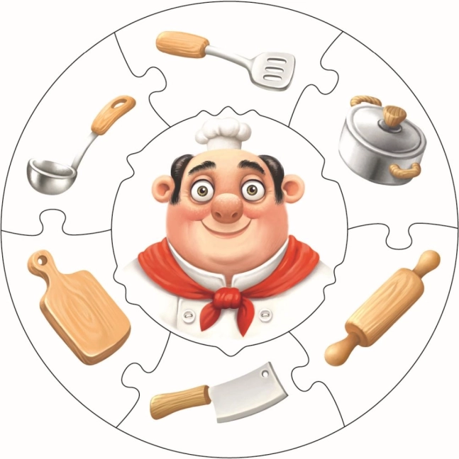 - 3 oddzielne okrągłe puzzle (strażak, kucharz, fryzjerka)