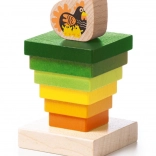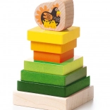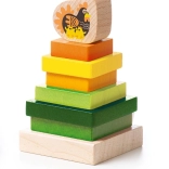 Drewniana kolorowa piramida z kurką CUBIKA – 8 elementów