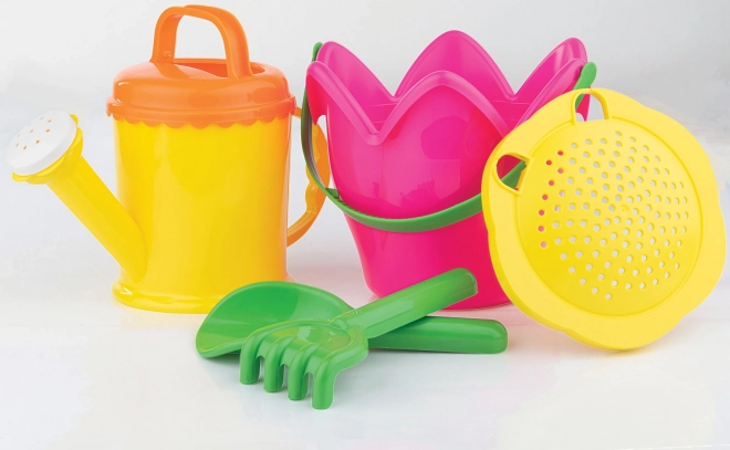 - Kompletne wyposażenie: wiaderko – tulipan, konewka 1,2 l, sitko, łopatka, grabki
