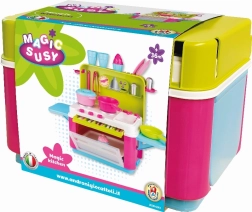 Kompaktowa podróżna kuchnia włoskiej marki ANDRONI ucieszy małych kucharzy od 3 lat. Oferuje 25 akcesoriów, wysoką włoską jakość wykonania oraz solidne, a jednocześnie elastyczne tworzywa sztuczne odpowiednie także do intensywnej zabawy w przedszkolach.