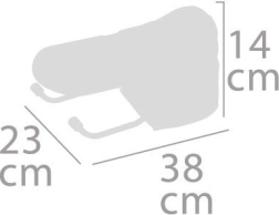 - Nosidełko na lalkę z usztywnionymi plecami i regulowanymi paskami, wymiary 58 × 65 cm.