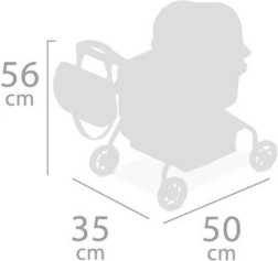 W zestawie znajduje się praktyczny plecaczek w tym samym stylu, pokrowiec gondoli z oczkami do bezpiecznego mocowania oraz przestronny koszyk na dodatki. Wózek jest dostosowany do młodszych dzieci – ma wysokość do rączki 56 cm oraz gondolę o wymiarach 40 × 23 cm, aby każda lalka mogła wygodnie „pospać”.