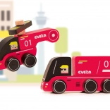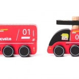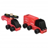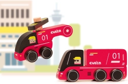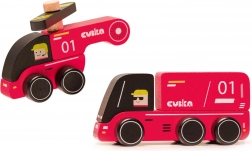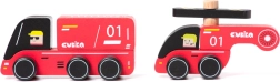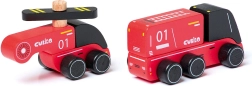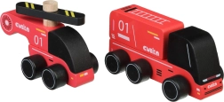 - Zestaw 2‑elementowy: wóz strażacki (12 cm) i helikopter (10 cm)